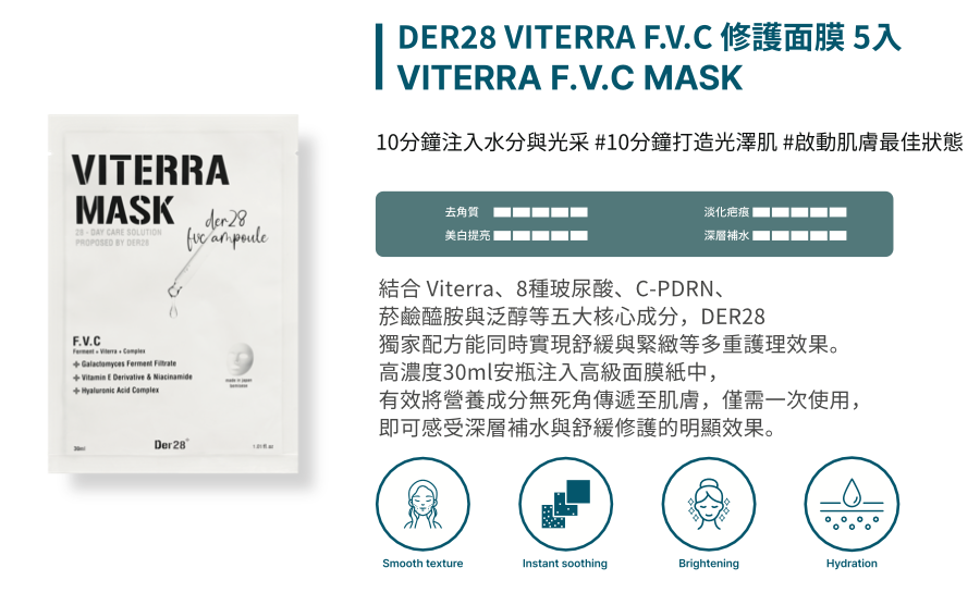 2.約10~20分鐘後取下面膜,將面部剩餘之精華液輕拍至吸收即可。