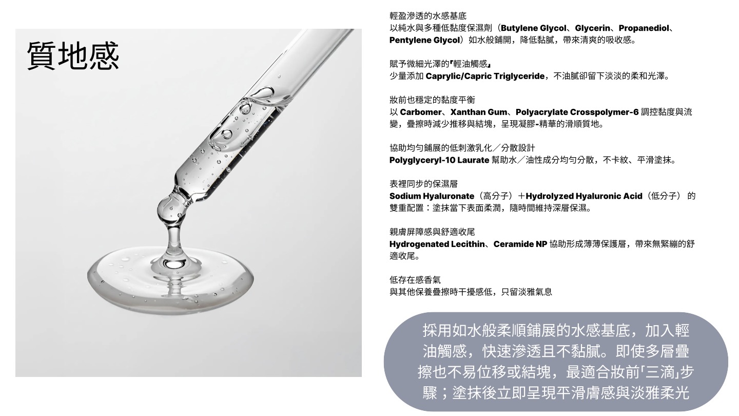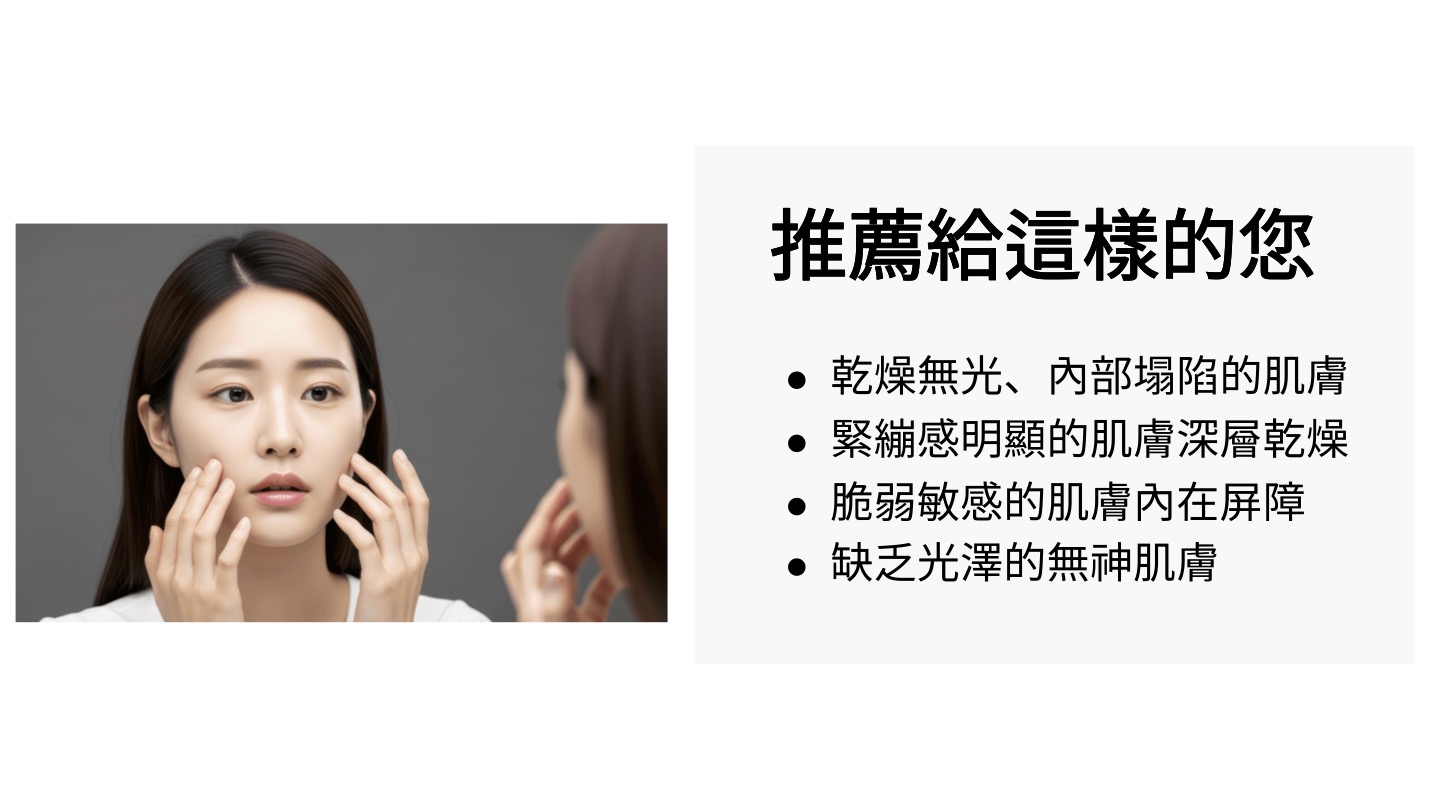 【用法】於化妝水後使用,取適量內容物沿著肌膚紋理由面部內側向外輕輕塗抹,用雙手依次輕輕按摩臉頰、額頭和下巴至吸收即可。