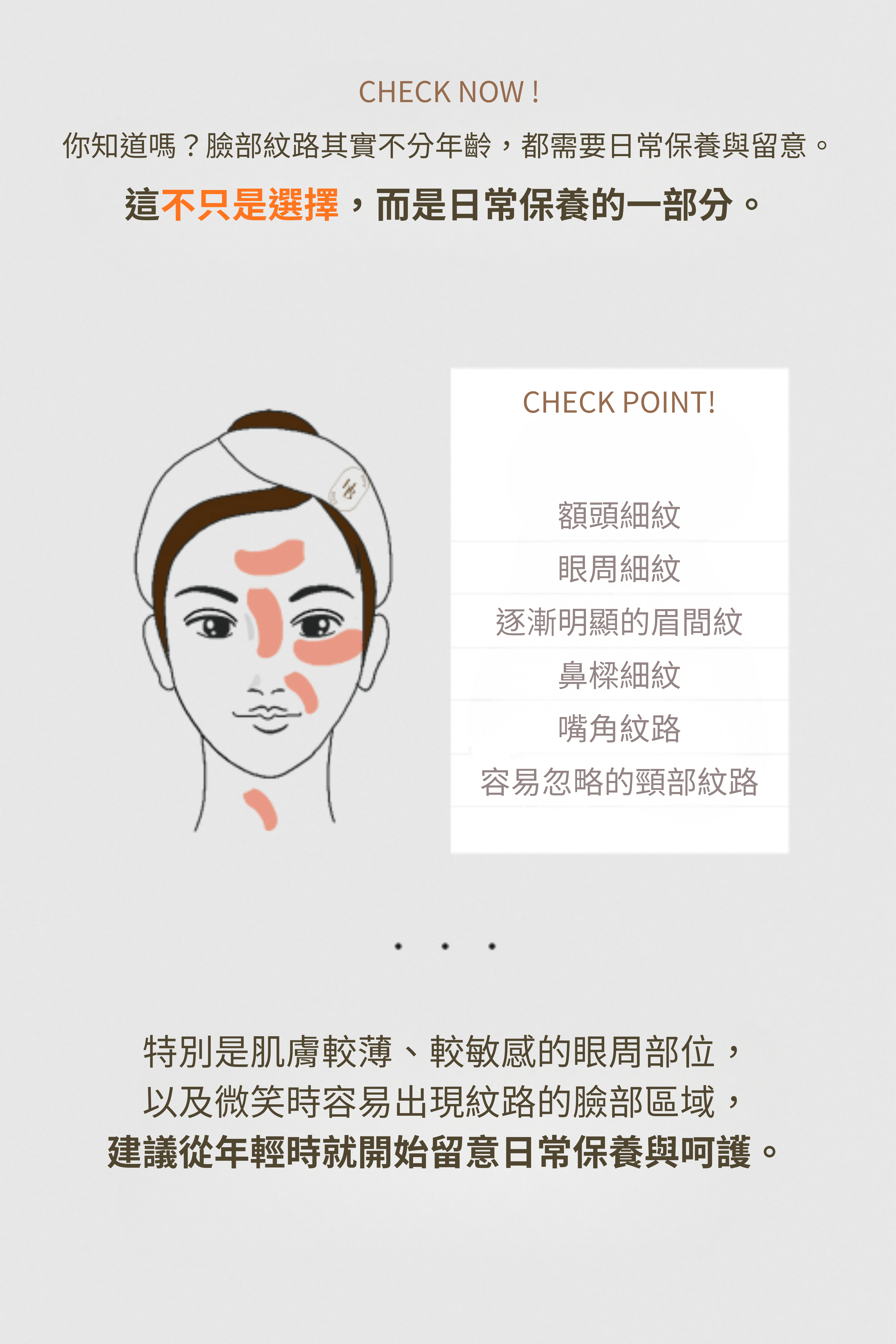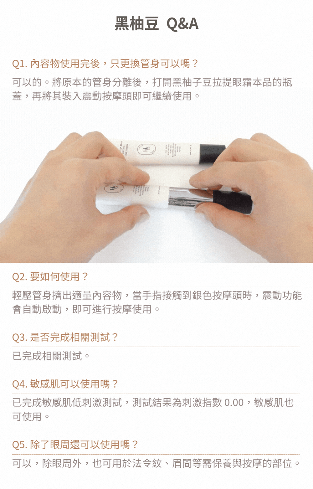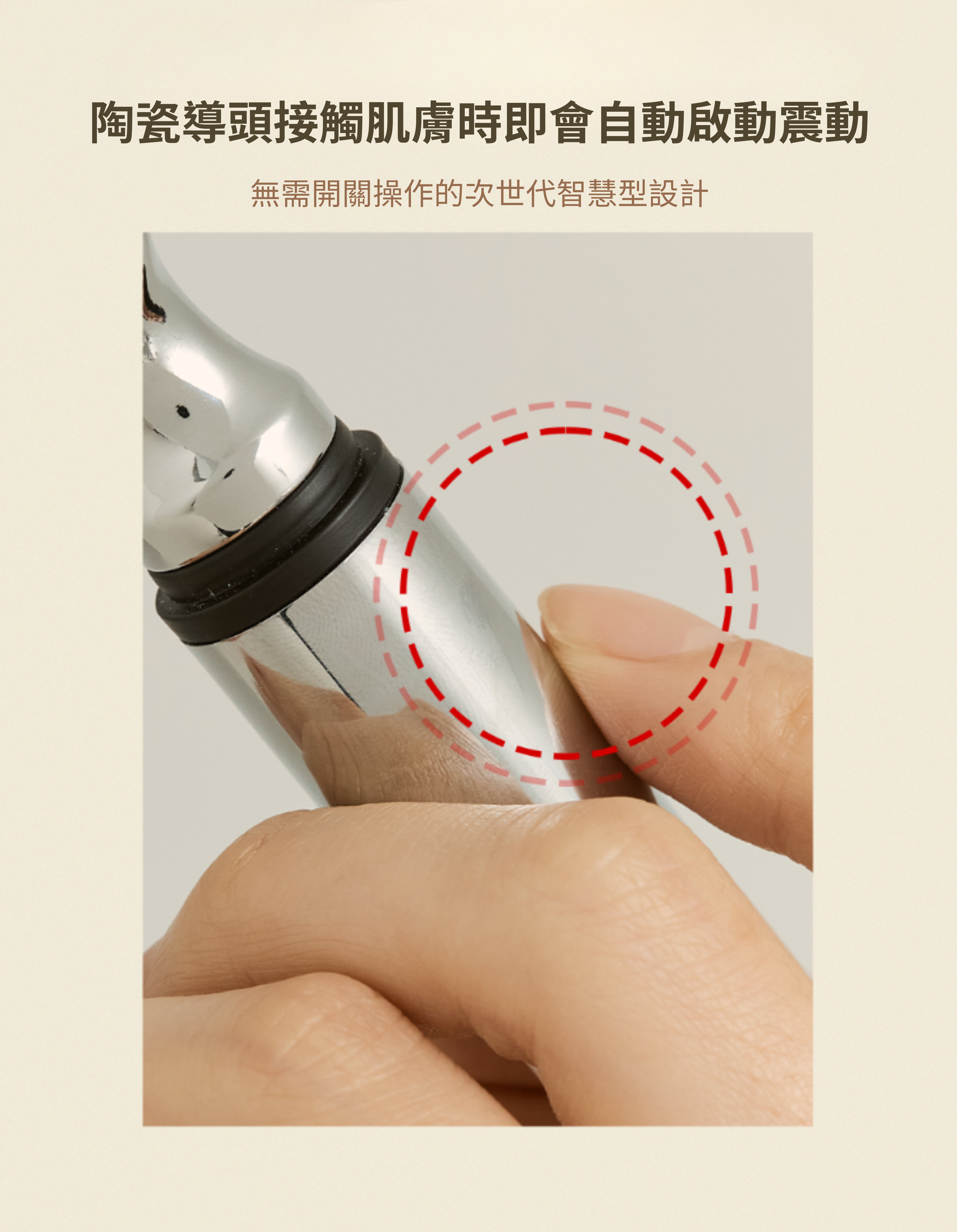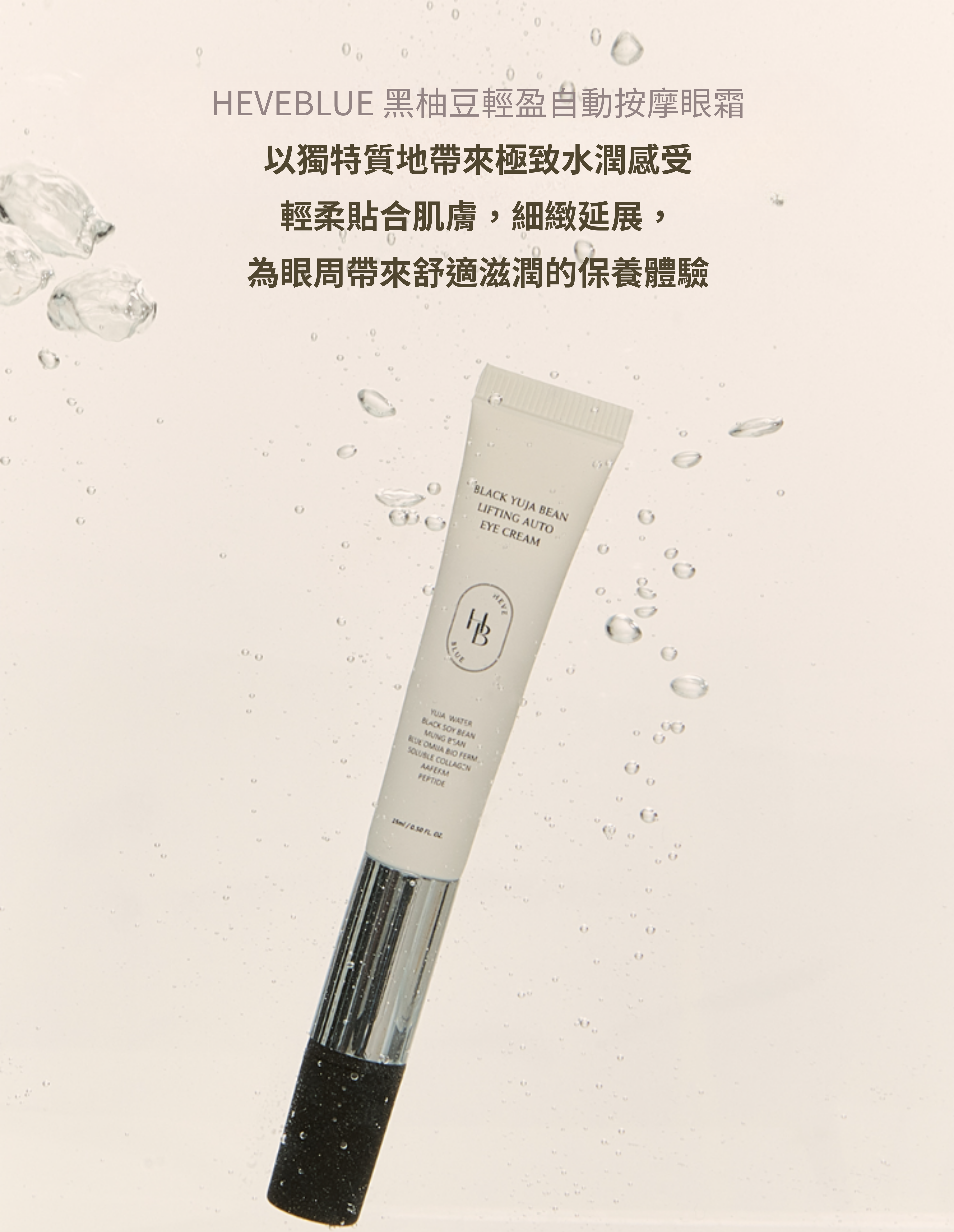 請於眼周、法令紋及頸紋等需要保養的部位,以畫圓方式輕柔滾動按摩,也可在臉部穴位處輕輕按摩,幫助肌膚放鬆、維持清爽感,隨時隨地都能輕鬆使用。