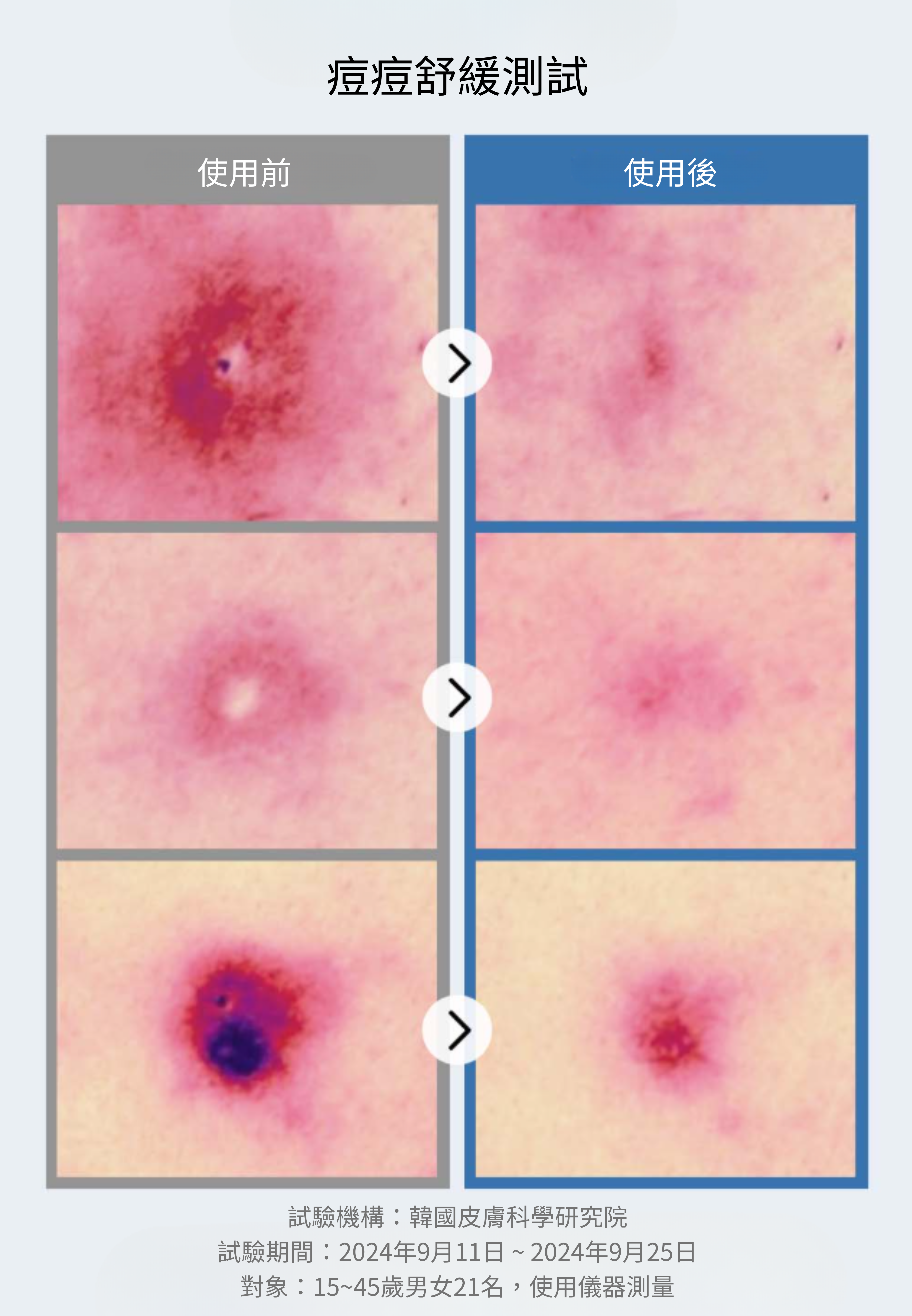2.使用前請注意確認皮膚有無異常,有傷口、腫脹、濕疹、皮疹、疼痛等症狀時請勿使用。
